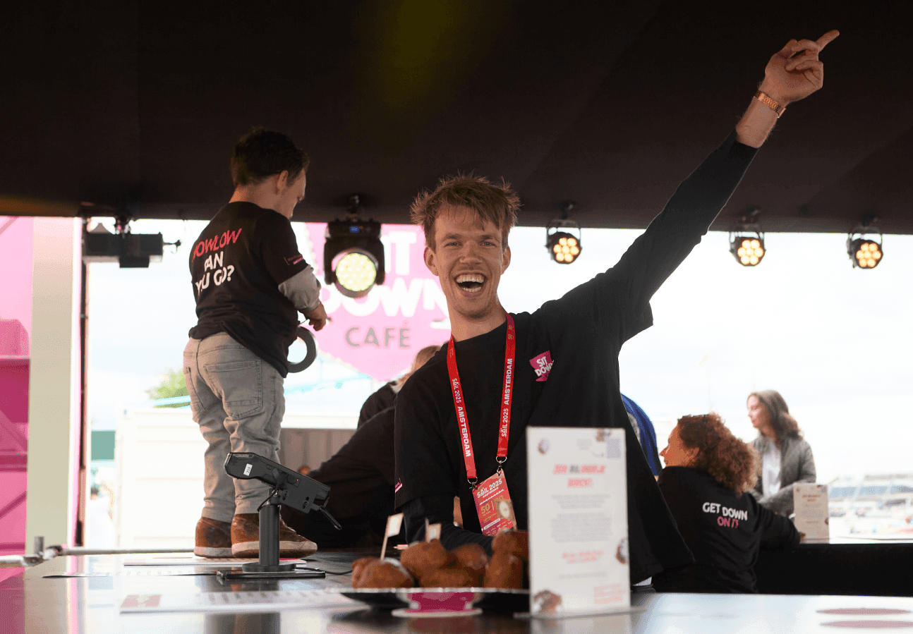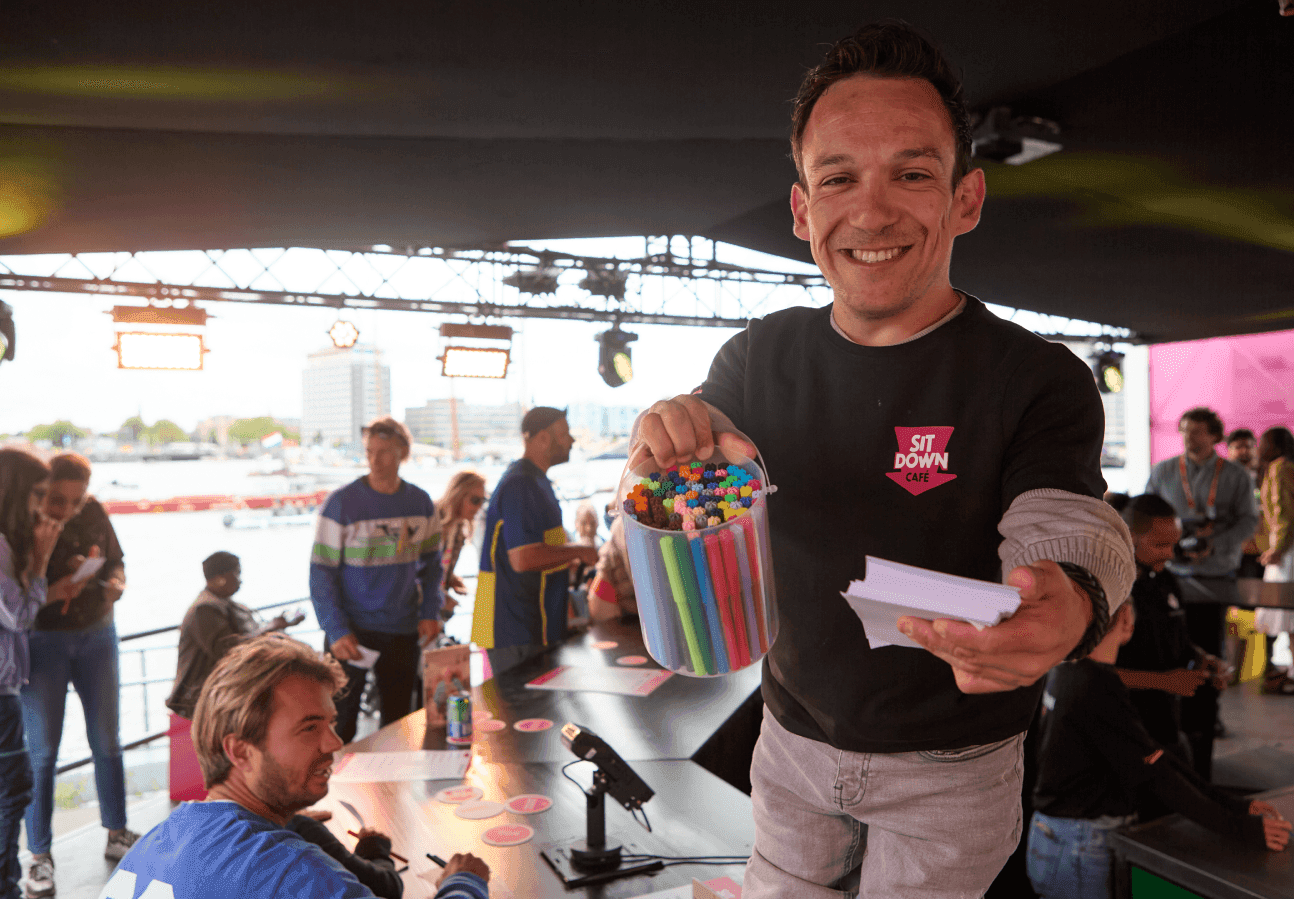 Collega Daniëlle uit Amsterdam vult aan: “Ik weet nog dat ik in 2015 als bezoeker dacht: de volgende keer wil ik hier vrijwilliger zijn. Het contact met mensen is geweldig. Ze komen uit de hele wereld en delen hun verhalen spontaan. Het wordt straks echt afkicken als ik maandag weer naar kantoor moet.”