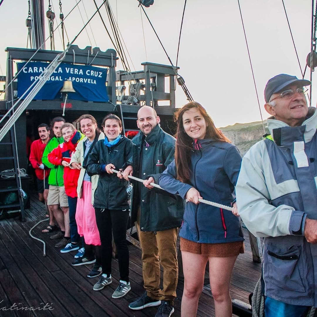 De Caravela Vera Cruz wordt bemand door vrijwilligers van Aporvela, die zich inzetten voor trainingsreizen en zeilervaringen, met een nadruk op educatie en jeugdontwikkeling.