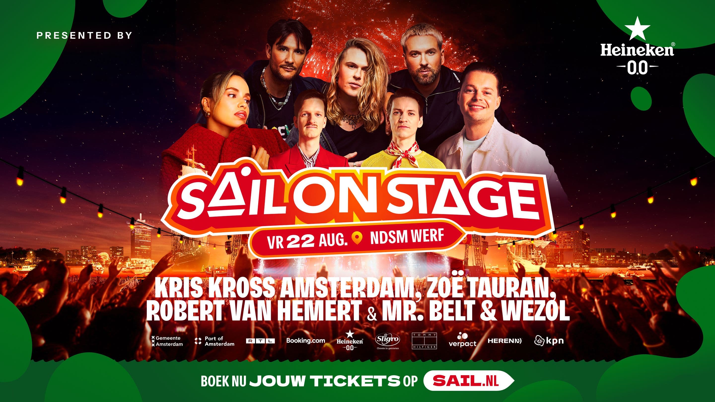 Party on Friday night with Heineken 0.0!š» On Friday night, August 22, SAIL On Stage goes wild with an epic dance lineup: Mr. Belt & Wezol: known for their energetic sets with a mix of house, techno and deep beats that will get every crowd dancing! Then it's time for Kris Kross Amsterdam & friends: ZoĆ« Tauran's soulful vocals and Robert's unique mixes make for an unforgettable night.