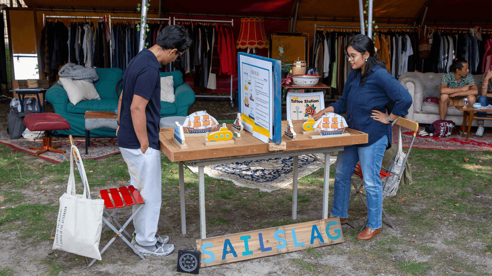 Bij de SAIL Kids Club spat het enthousiasme eraf! Jula (8) en Sola (11) staan samen met tien andere kinderen in de rij voor hun allereerste zeilles in een Optimist, het kleine zeilbootje speciaal voor kids. Ook Ryan (9) en zijn neefje (6) kunnen niet wachten om het water op te gaan, terwijl Max (12) juist trots vertelt dat hij al vaker heeft gezeild.