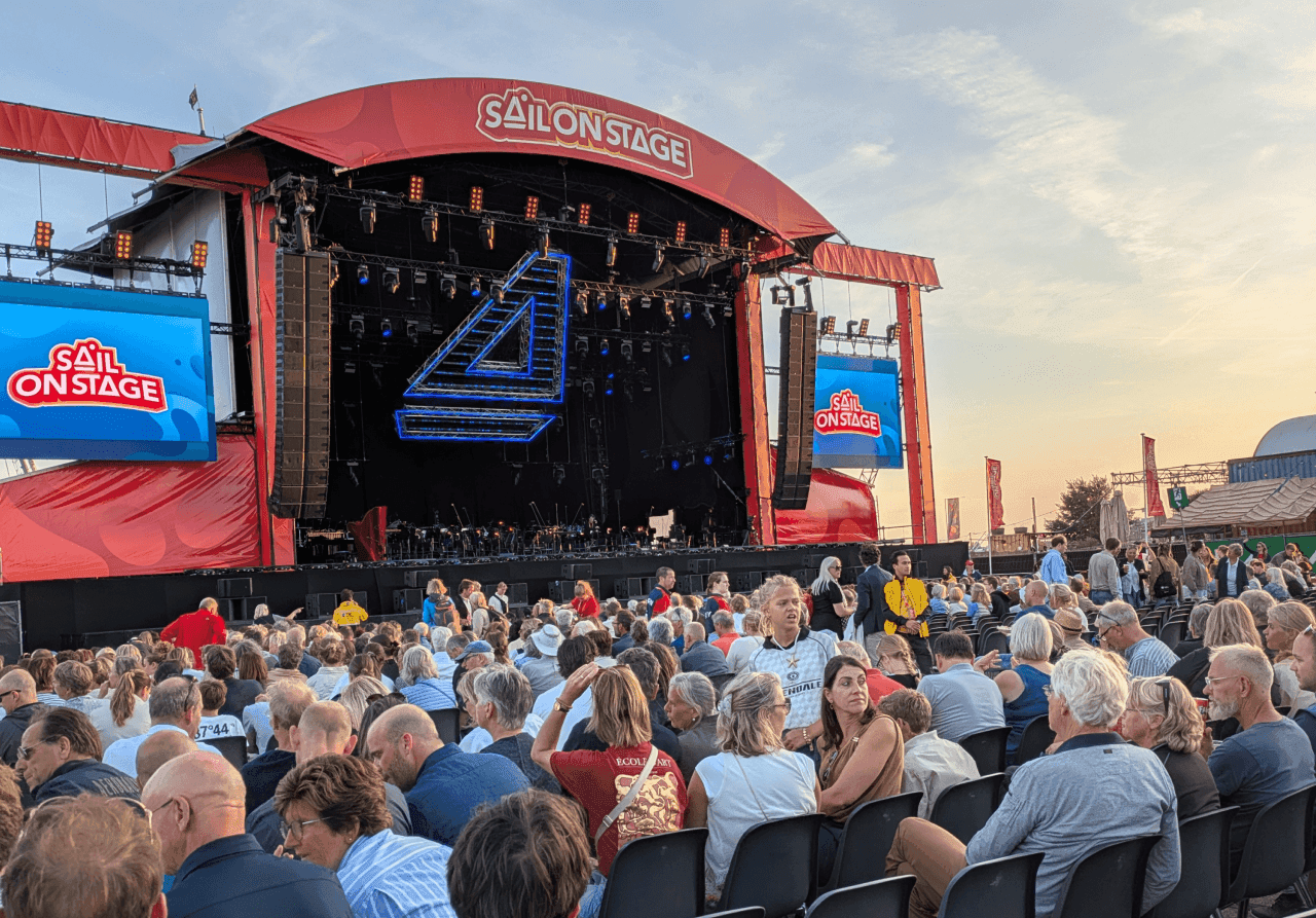 Het publiek schuift langzaam aan, de stoelen vullen zich en de spanning stijgt. Op de achtergrond liggen de Tall Ships klaar als indrukwekkend decor.