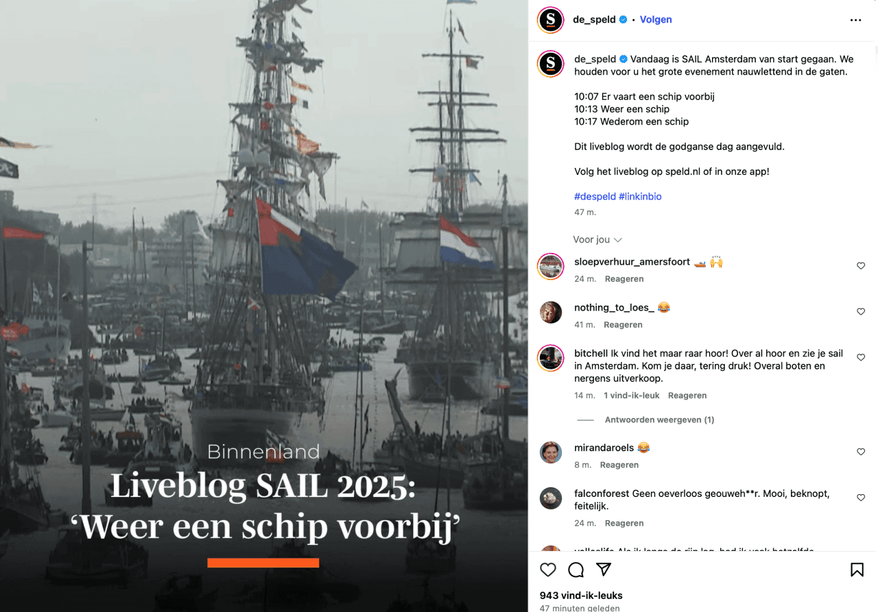Om 10.00 uur openen de sluizen in IJmuiden en start de officiële SAIL-In Parade, de internationale schepen beginnen aan het laatste deel van hun route naar Amsterdam. In dit liveblog houden we je de hele dag op de hoogte van de mooiste momenten. Wil je precies weten wat er verder allemaal te doen is? 👉 Check dan de SAIL-app voor het volledige programma en de plattegrond.