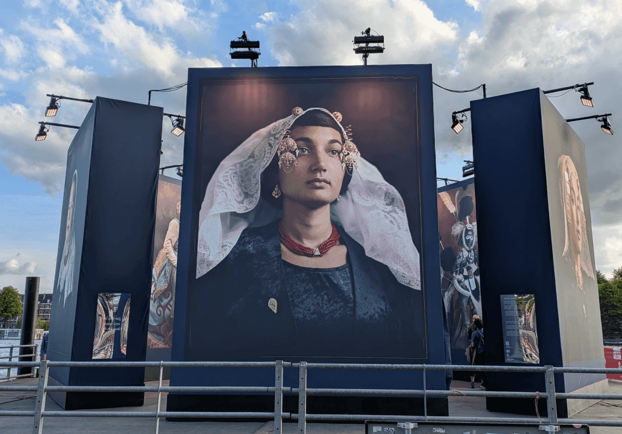 Aan de buitenzijde: portretten van Nederlandse gemeenschappen in klederdracht (Between the Sea and the Sky). Binnenin: grootschalige beelden van culturen wereldwijd, een visuele dialoog over identiteit, traditie en gedeelde menselijkheid.