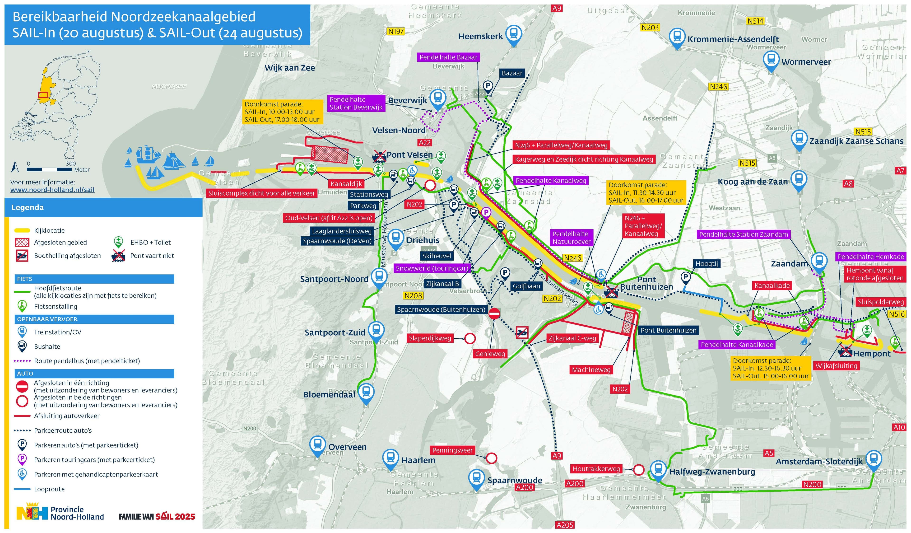 Vandaag wordt het extra druk rond het Noordzeekanaal en in de hoofdstad. Kom je naar de SAIL-In Parade, check dan vooraf de actuele bereikbaarheid en bekijk de speciale kaart van Provincie Noord-Holland met wegafsluitingen, omleidingen en vervoerstips. Zo ben je snel en slim onderweg naar jouw favoriete spot langs het kanaal of in de IJhaven. 🌊🧡