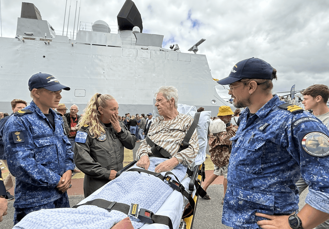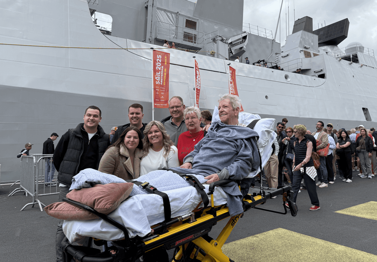 De vrijwilligers lieten vandaag Henny’s wens in vervulling gaan, in het bijzijn van haar familie. Samen met haar familie genoot Henny vandaag van een onvergetelijke dag. Speciaal kwam ze naar SAIL om het marineschip Zr. Ms. Evertsen van dichtbij te bewonderen. Een bijzonder moment, want haar man Ab was matroos bij de marine toen zij hem lang geleden ontmoette. Mariniers stapten van boord om haar persoonlijk te ontmoeten. Dankzij Stichting Wensambulance werd een gekoesterde wens werkelijkheid. 🌊🧡