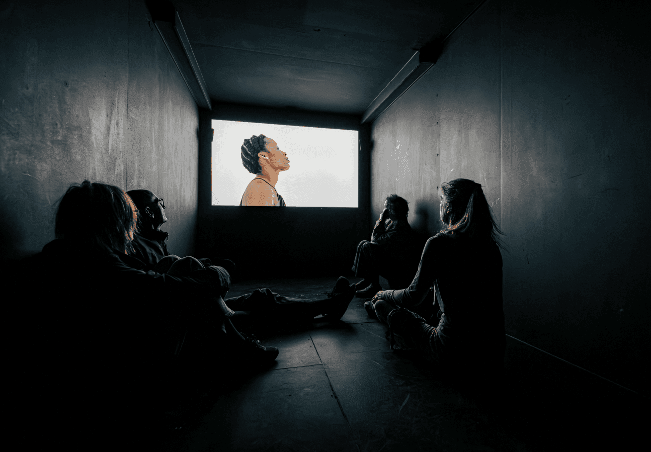 Het project van Monique Duurvoort, naar een idee van Afra Donker, grijpt je meteen vast. Het zware gordijn sluit, de container wordt donker. Uit het scheepsjournaal van het slavenschip Hof van Zeeland (1733) klinkt de stem van de kapitein: vijf tot slaaf gemaakte vrouwen sprongen overboord, op zoek naar vrijheid. Slechts één regel in het logboek, maar hier wordt hun verhaal opnieuw verteld, in beweging, emotie en water.