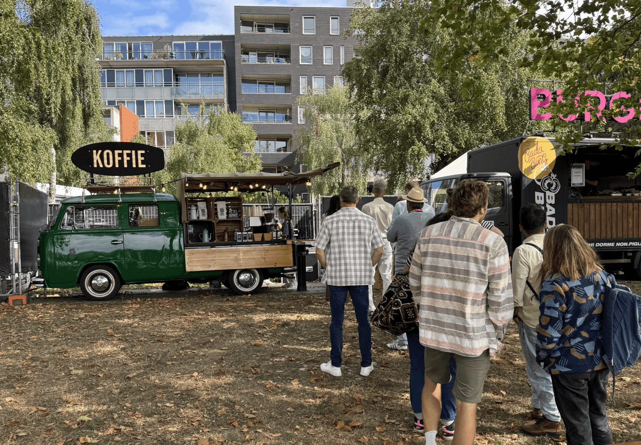 In de ochtenden is koffie koning. In de Bogortuin staan rijen bezoekers geduldig te wachten op hun eerste bakkie. Aan een picknicktafel aan het IJ genieten John en Petra (49) uit Zaandam van hun cappuccino: “Lekkere koffie, goede schuimlaag en supervriendelijke bediening.” ☕✨