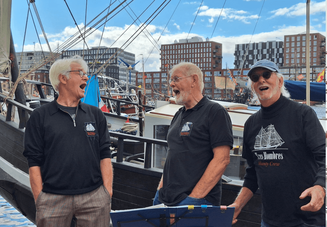De ontmoeting tussen de Tres Hombres en de Grayhound krijgt zo een muzikaal tintje: een spontaan moment van verbondenheid dat perfect past bij de sfeer van SAIL. 🌊✨
