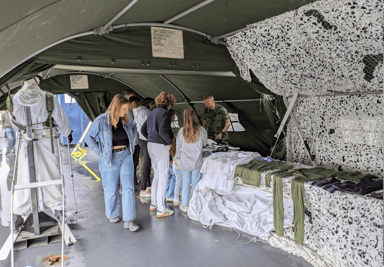 Marlien (45) en haar zoon Michael (9) kwamen nieuwsgierig een kijkje nemen: “We zagen de Karel Doorman dinsdag aankomen en toen we hoorden dat je ook aan boord kon, wilden we toch even gaan kijken.” Hoewel Michael geen plannen heeft om bij de marine te gaan en zijn moeder dat ook niet direct ziet zitten, genoten ze zichtbaar van de ervaring. “We hebben net een zeil- en sup-les gevolgd, dat is voorlopig avontuur genoeg.” 😂