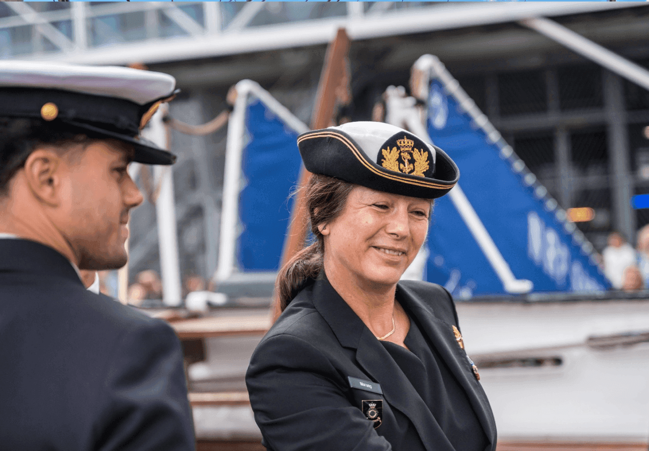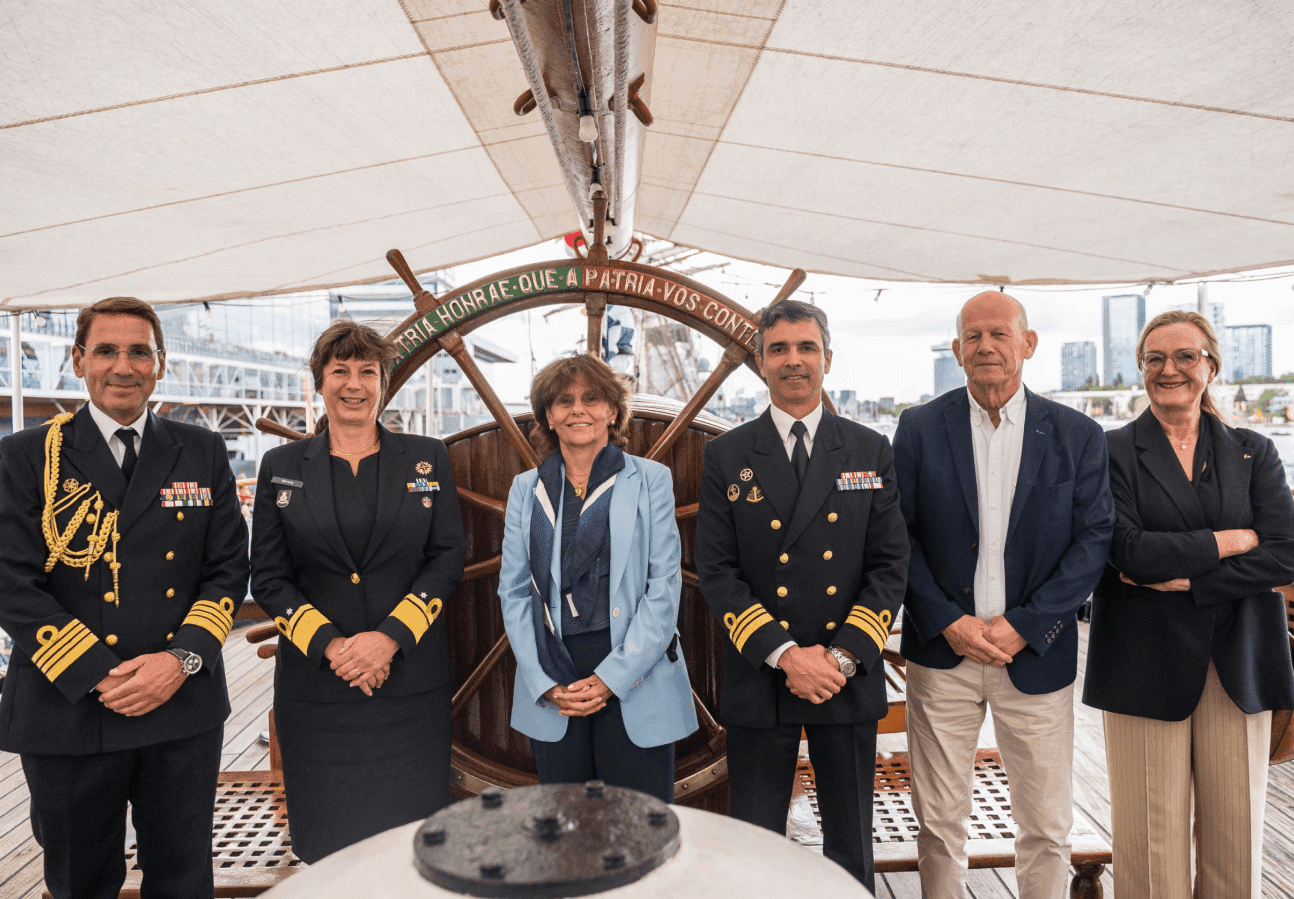 Tijdens SAIL Amsterdam vormen de Tall Ships niet alleen een prachtig decor, maar ook het toneel van bijzondere ontmoetingen. Zo ontvingen de kapitein en bemanning van de Portugese driemaster Sagres vrijdag de Portugese ambassadeur in Nederland, Clara Nunes dos Santos, en Schout-bij-nacht Jeanette Morang.