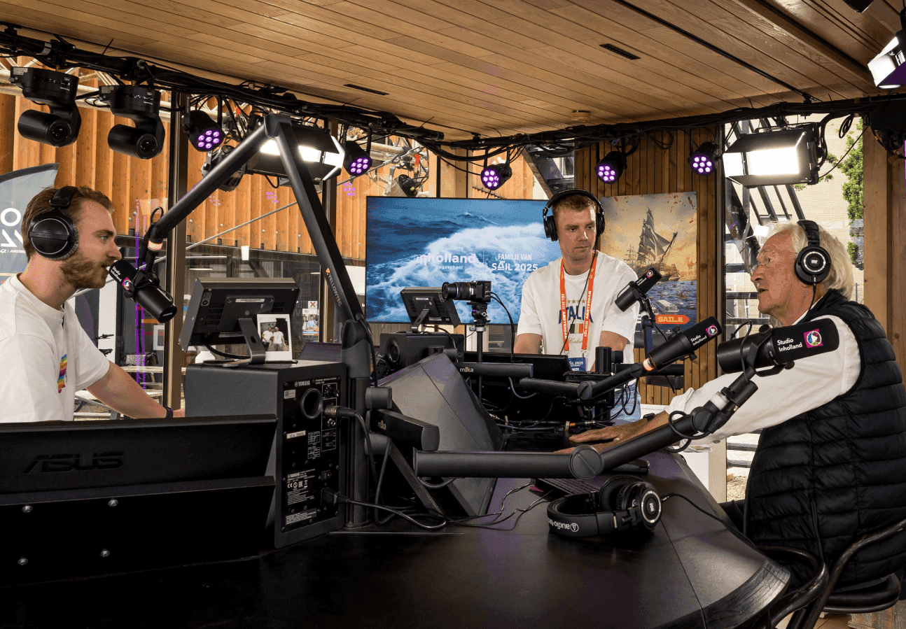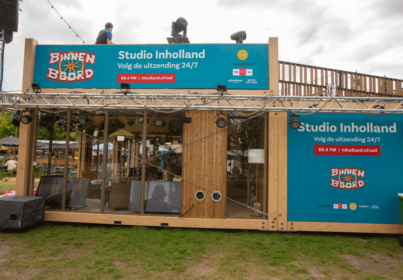 Op het Binnenboord Festivalterrein staat tijdens SAIL een glazen huis. Iedere dag vanaf 12.00 uur zendt Studio Inholland live uit vanuit de Zeekantine. Vandaag hoor je onder meer presentatoren Obi Raaijmaakers (NPO 3FM), Olivier de Neve (Rijnmond & NOS) en Robin van der Graaf (NPO 3FM). Studiogasten waren onder andere Margit Bosch (SAIL Academy), Alvin Williams (Waves of Light & SAIL On Stage) en de politie Amsterdam, die vertelde over het monitoren van de drukte in de stad. Ondertussen lopen reporters langs de kades om sfeerimpressies te delen met de luisteraars. 📻