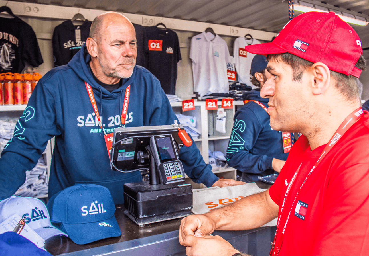 Al vroeg in de ochtend staan er mensen in de rij om een mooi SAIL item te kopen van één van de vele merchandise stands. Van waterflessen tot shirts, er zijn veel leuke herinneringen mee naar huis te nemen. Het valt op dat veel internationale SAIL bezoekers een merchandise item kopen. Juan uit Madrid had een weekendje Amsterdam geboekt met zijn vrouw, maar kwam er donderdag bij aankomst pas achter dat SAIL gaande was. ‘We hebben nog niet veel van de stad Amsterdam gezien, we lopen alleen maar langs alle Tall Ships en hebben al een paar keer meegevaren. Wat een evenement is dit! We zijn blij dat we dit weekend hebben uitgekozen, dit maakt de stad nog mooier dan het al is. Als aandenken nemen we de puzzel en de sokken mee, dat maakt ons SAIL bezoek helemaal compleet’.