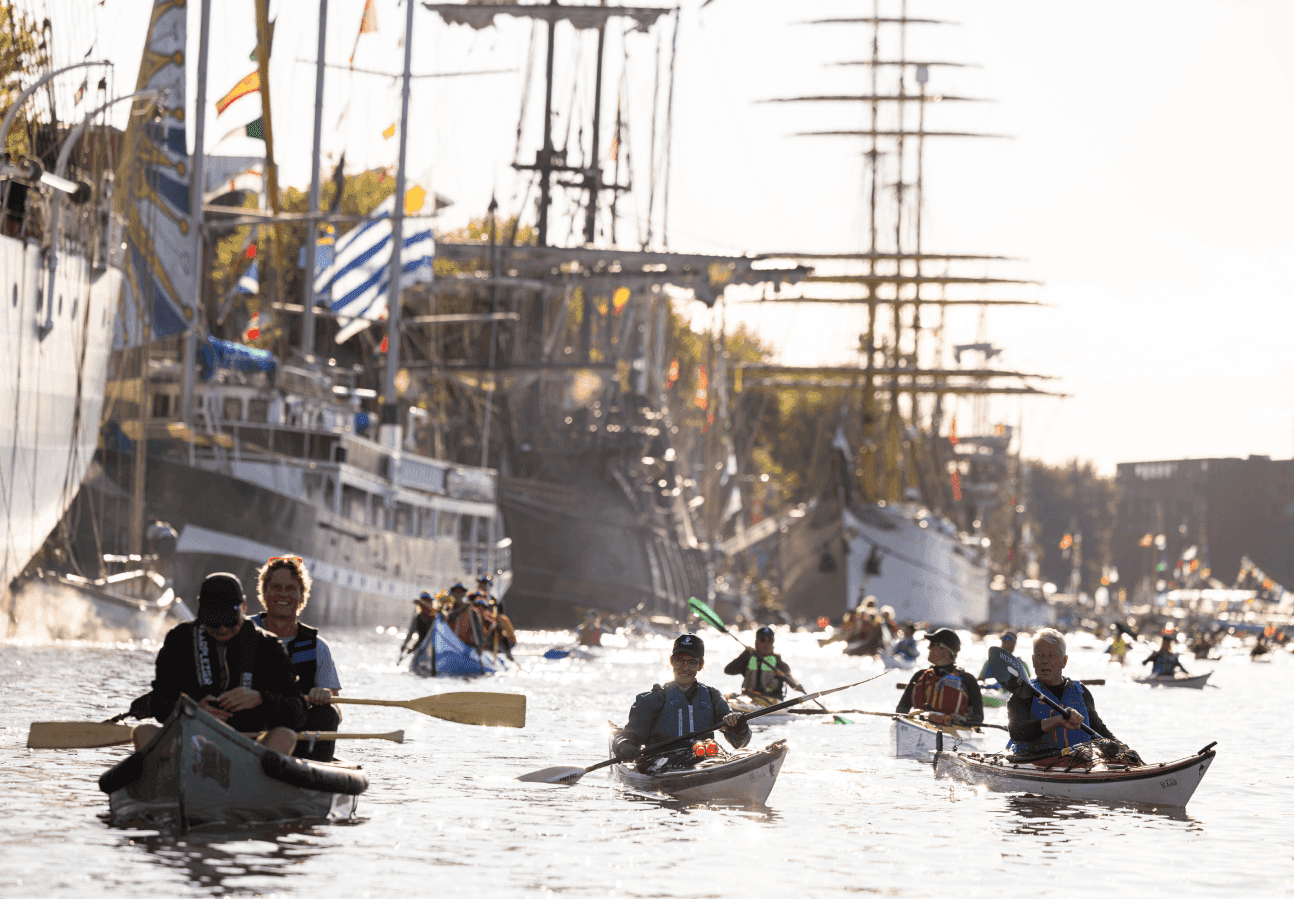 🚣♂️ Start de dag met het Kanosaluut. Meer dan 100 kanoërs brengen eerbetoon aan de Tall Ships (09:00–10:30)
