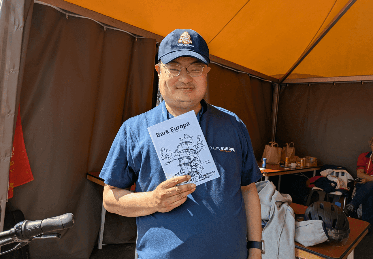 Tijdens de SAIL-Out hees de bemanning van de Portugese karveel Vera Cruz de zeilen en maakten ze de trossen los. Diogo straalde: “Dit evenement was geweldig – de sfeer, de mensen, de schepen. We voelden ons echt thuis hier in Amsterdam.” 💙