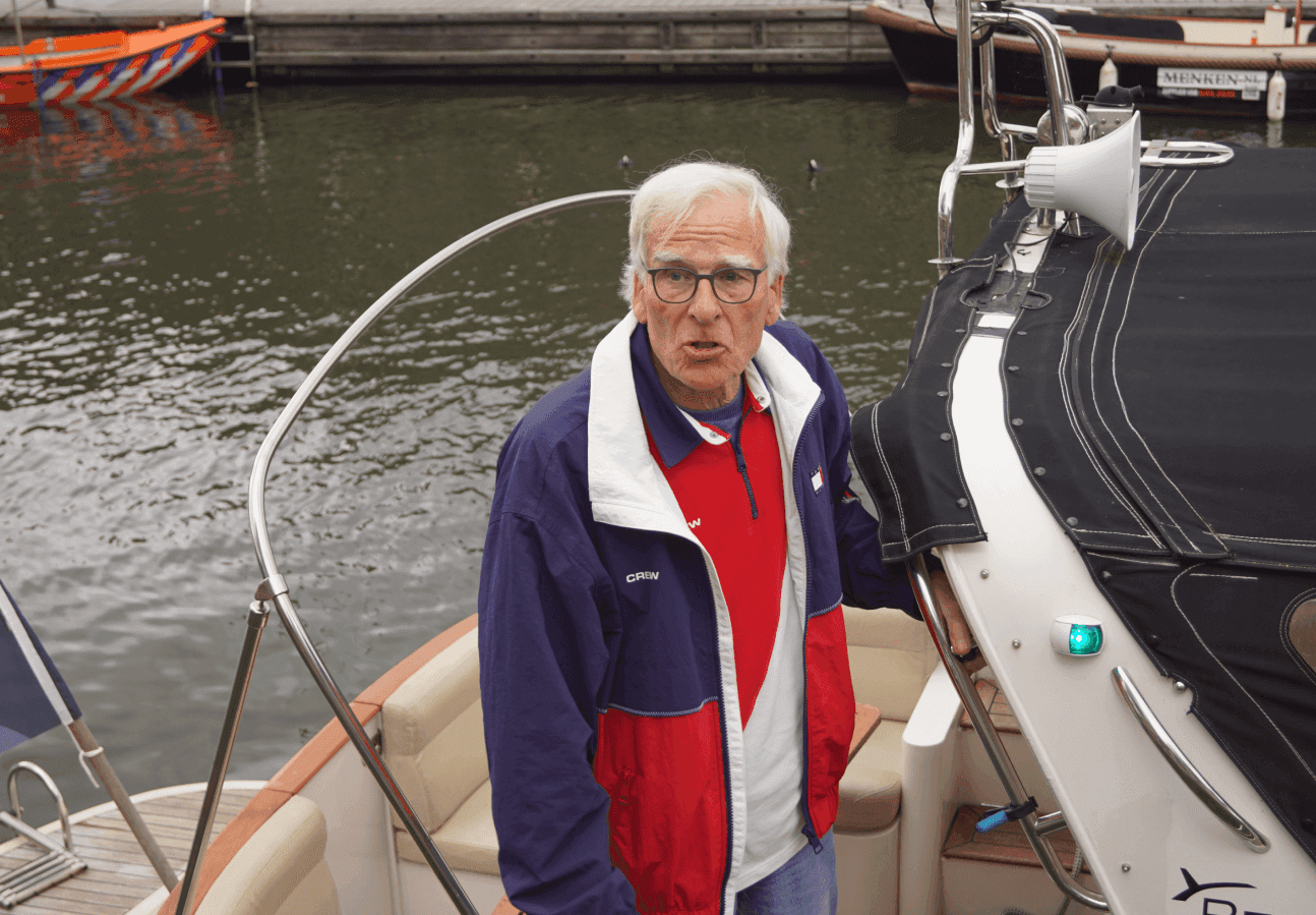 Paul is schipper op een van de SAIL-watertaxi’s en vaart VIP-bezoekers rond door de IJhaven. Tussen de drukte op de kade nemen we kort de tijd om hem te spreken. Zijn boot ligt al klaar om nieuwe gasten aan boord te nemen. “Het is chaotisch varen, maar wel ontzettend leuk!”, vertelt hij met een glimlach.
