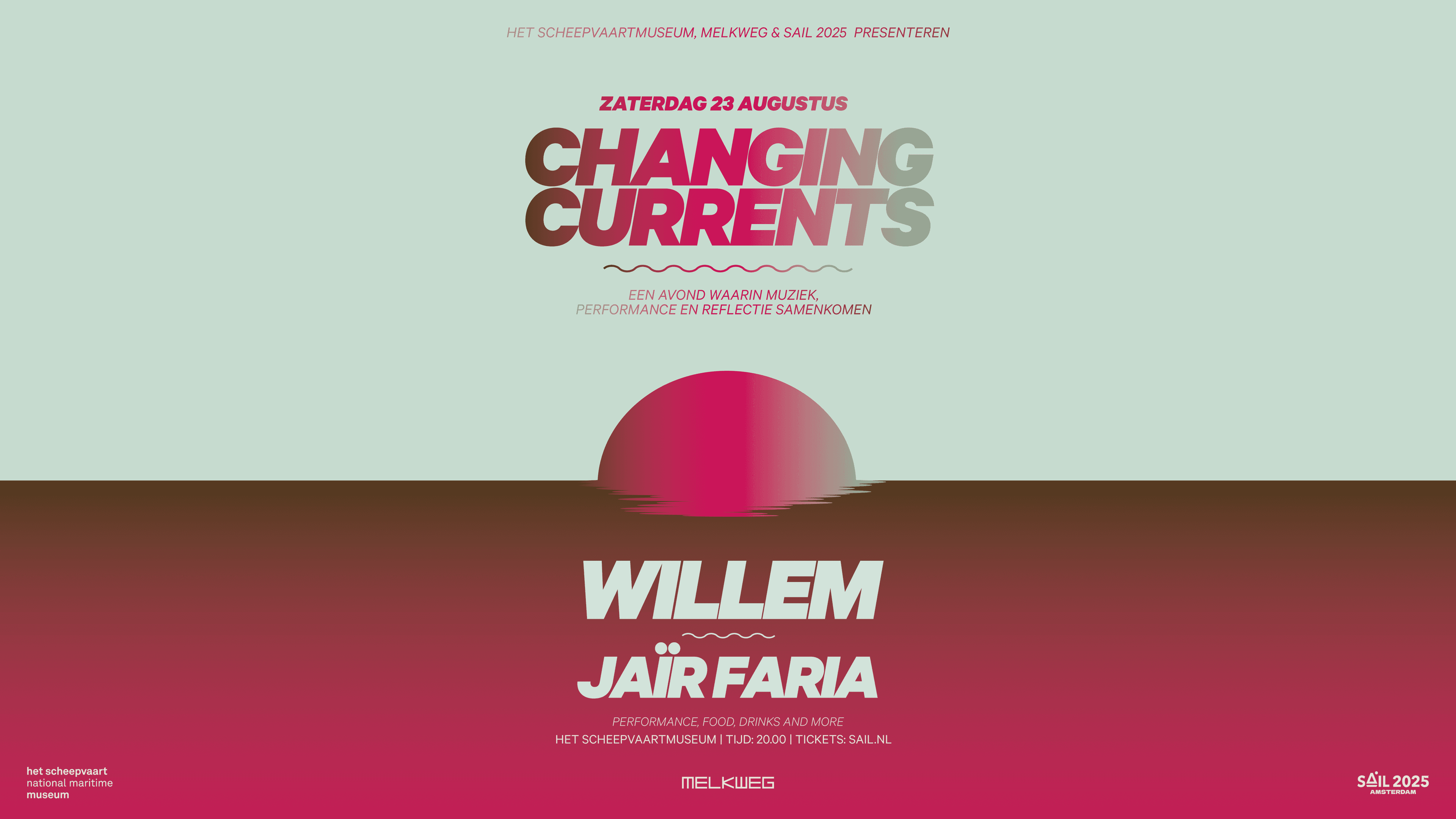 Het avondprogramma vindt plaats in Het Scheepvaartmuseum, dat de historische gelaagdheid van het evenement belichaamt. Voor Het Scheepvaartmuseum vormt Changing Currents een logische aanvulling op de inspanningen om ruimte te bieden aan nieuwe perspectieven op het maritieme verleden. Voor Melkweg sluit het programma aan bij de ambitie om makers en publiek samen te brengen rondom urgente thema’s in kunst en samenleving. De samenwerking onderstreept de gezamenlijke wil van de drie partners om SAIL te verrijken met een inclusief, gelaagd en eigentijds programma, in lijn met het motto van SAIL 2025 United by Waves.