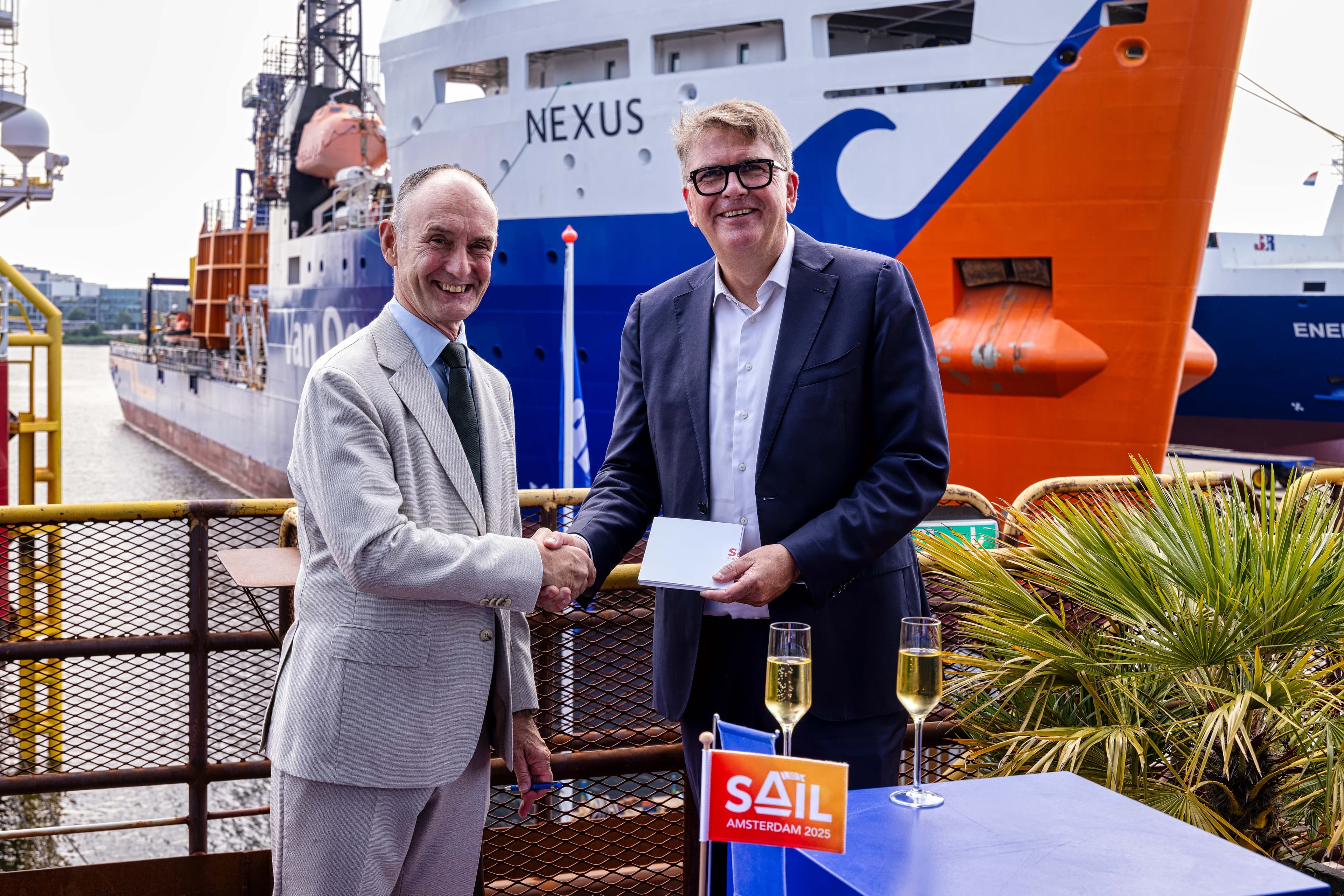 In de ‘Groene Oceaan’, het gebied rondom Damen Shiprepair Amsterdam en het NDSM-terrein in Amsterdam Noord, kan het brede publiek van alles beleven rondom het thema Innovaties & Duurzaamheid. “Navigating the Future noemen we het: waarbij we innovaties uit de maritieme industrie voor iedereen zichtbaar maken tijdens SAIL in ons jarige hoofdstad. Het is geweldig dat Damen met haar duurzame en innovatieve schepen hier een voortrekkersrol in neemt”, aldus Mitra van Raalten, directeur SAIL2025. Arnout Damen vervolgt: “Het thema Innovaties en Duurzaamheid sluit goed aan bij ons. We willen voor alle typen schepen die we aanbieden ook een duurzame variant ontwikkelen. Momenteel bieden we al volledig elektrisch aangedreven sleepboten, ferries, werkschepen en vaartuigen voor de baggerij en offshore aan.”