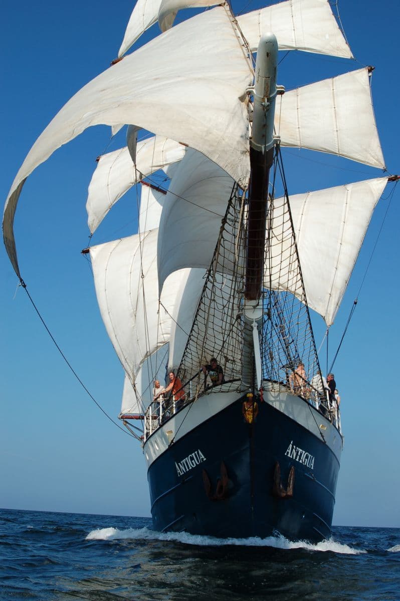 Het zeilschip Antigua heeft een rijke geschiedenis die teruggaat tot 1957. Oorspronkelijk werd het schip in Thorne, Yorkshire (Groot-Brittannië) gebouwd als een nederig vissersschip. Jarenlang vervulde het zijn rol op de zeeën zonder veel ophef. Maar achter die arbeidsuitrusting school een verborgen schoonheid die pas later werd ontdekt. In de vroege jaren '90 van de vorige eeuw ontstond het idee om de Antigua om te bouwen tot een majestueuze driemaster. Met een uitgebreide en rigoureuze transformatie behield het schip alle kenmerken van een modern groot zeilschip. Zo voltrok zich de metamorfose van een eenvoudig vissersvaartuig naar een elegante en trotse zeilende dame. De Antigua, net als haar zusterschepen Artemis en Mare Frisium, begaf zich op avontuurlijke reizen over de wereldzeeën.