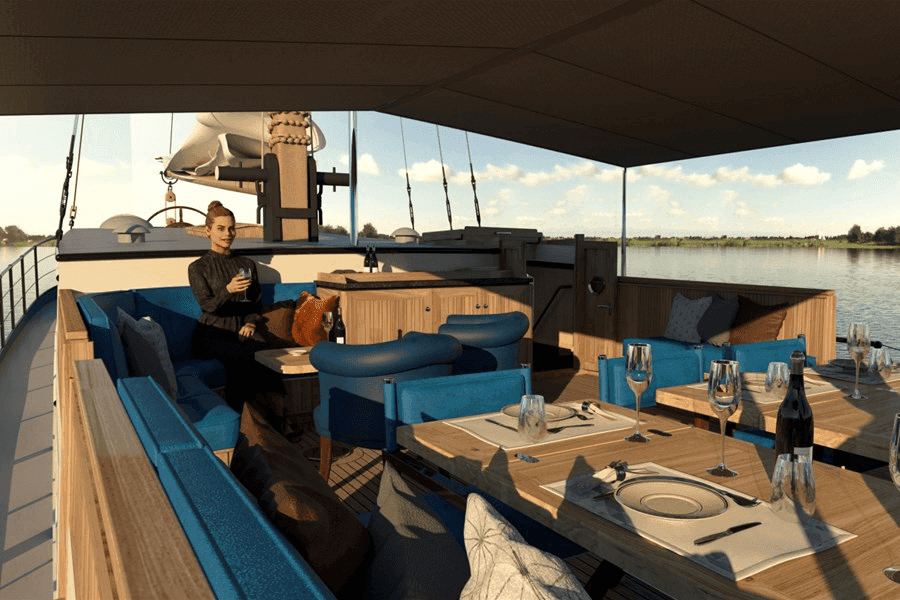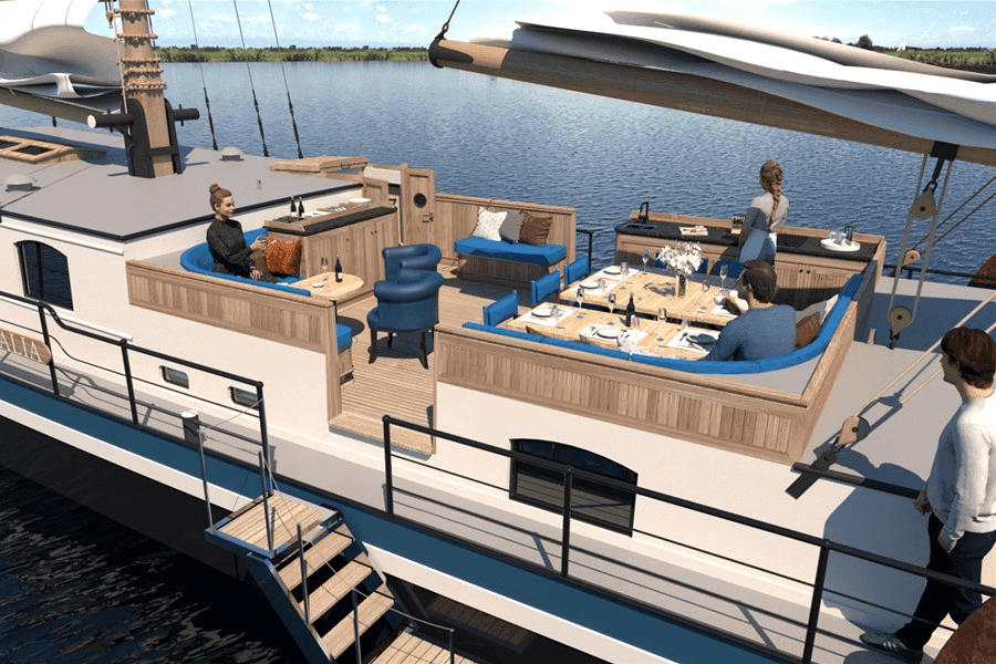 De Aquamarijn is een klipper met een harmonieuze mix van functionaliteit en elegantie. Tijdens SAIL Amsterdam op de IJ-haven biedt de Aquamarijn een adembenemend uitzicht voor 12 gasten. Het dek is de perfecte plek om te genieten van het maritieme spektakel.