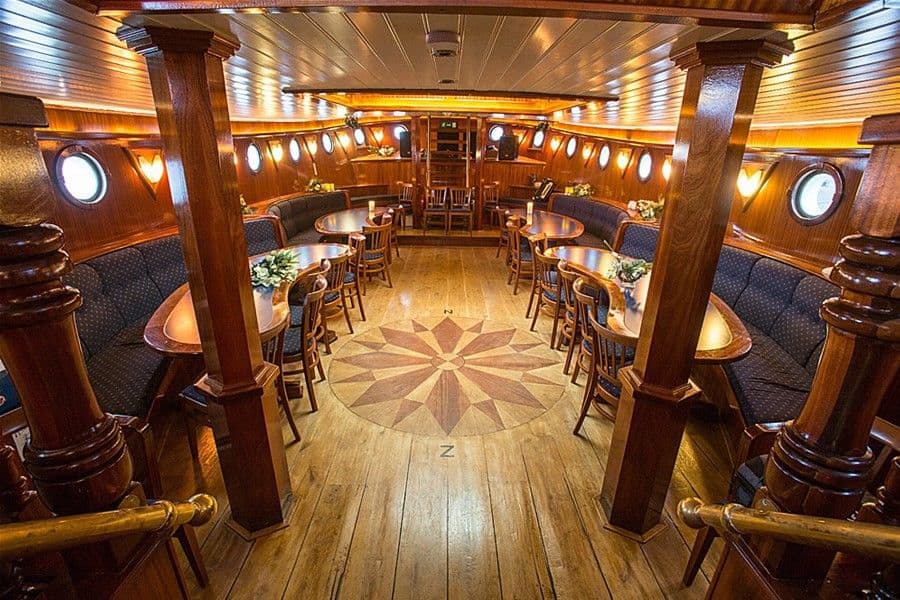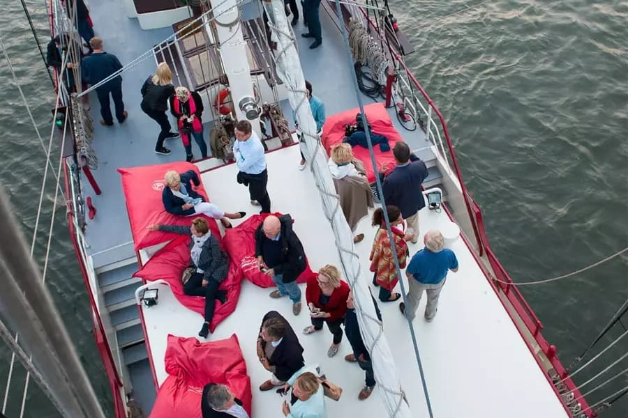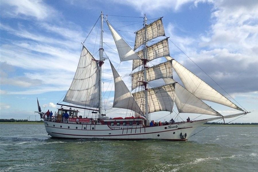 De Bounty is een prachtige tweemast brigantijn. Bij een brigantijn is alleen de voorste mast dwars getuigd. Van 1954 tot 1977 werd dit schip ingezet als viskotter op de Noordzee. Vanaf 2004 is zij omgebouwd tot luxe zeilschip met oog voor comfort, veiligheid en stabiliteit. Op het dek liggen loungekussens om op te zitten terwijl je geniet van alles om je heen. Het schip heeft een gezellige bar met rondom uitzicht over het water en een sfeervolle eetsalon.