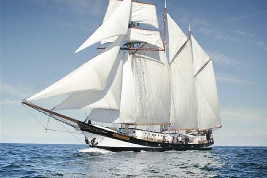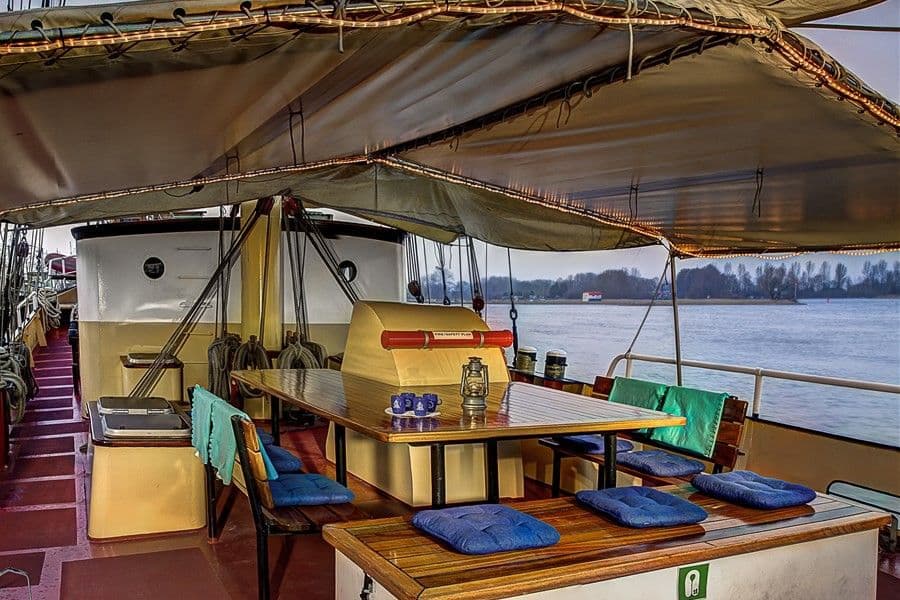 De ‘Swaensborgh’ is nog net zo indrukwekkend en sierlijk als in 1907 toen zij in het Duitse havenstadje Moorege van de helling gleed. Tot ver in de tachtiger jaren was de schoener met haar vracht een veel geziene gast in tal van Oost- en Noordzeehavens. Het schip beschikt over een comfortabel dekhuis met ruime bar en representatieve salon. Bovendeks zijn houten bankjes met in het midden een grote tafel.